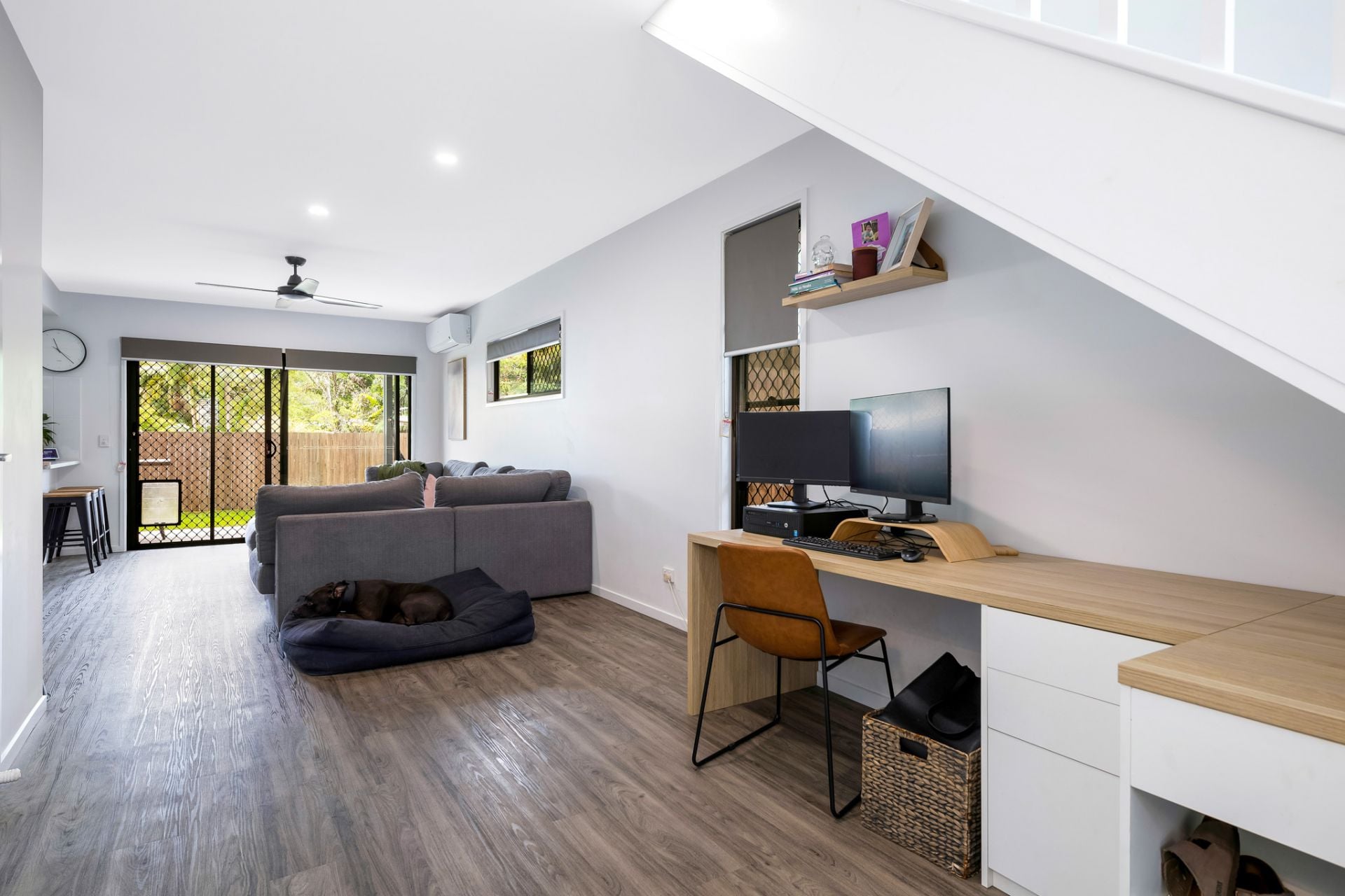 Parking options include a single lock-up garage with internal access and there is plenty of visitor parking. There is extra storage shelving in the garage. Body corporates are approximately $700 per quarter and the complex is pet-friendly.