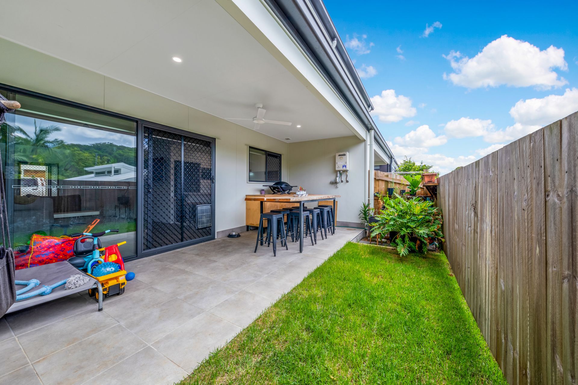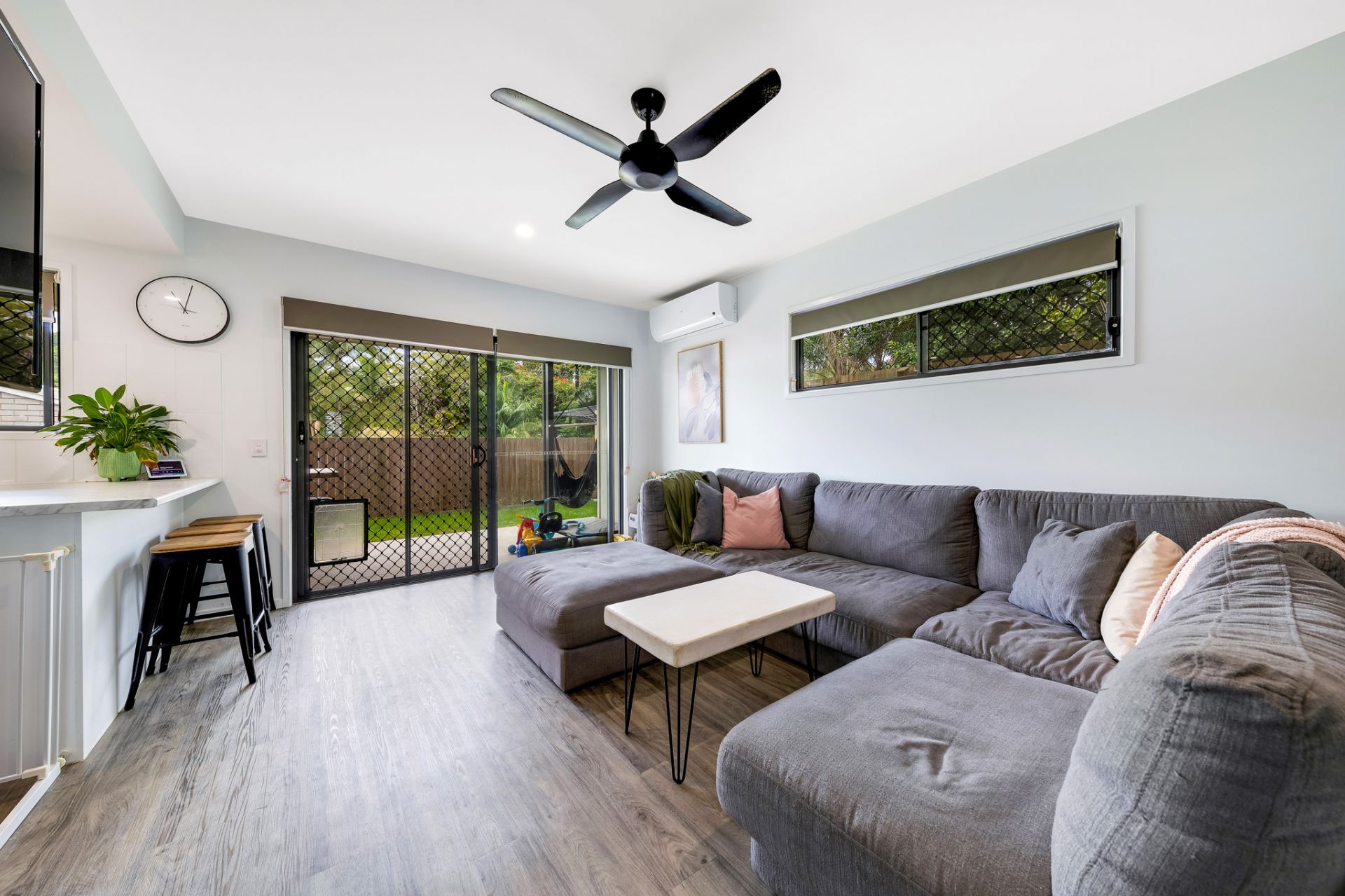 Downstairs showcases stylish open plan living between the living, dining and kitchen and flows outside onto the undercover and private entertaining area. There is a secondary toilet and powder room for your convenience. The grassed yard is fenced, which is great for kids and pets – and there's also side access for convenience!